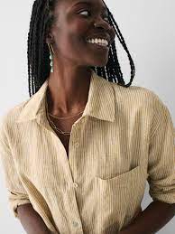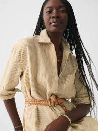Low-key elegance is a breeze in our favorite fabric of the season: linen. Naturally cooling, lightweight, and washed for incredible softness, its earthy texture looks especially elevated in clean, simple silhouettes. We designed it with a button detail in the back to create a subtle, cinched effect for a relaxed and feminine shape that's timeless and ultra-flattering.