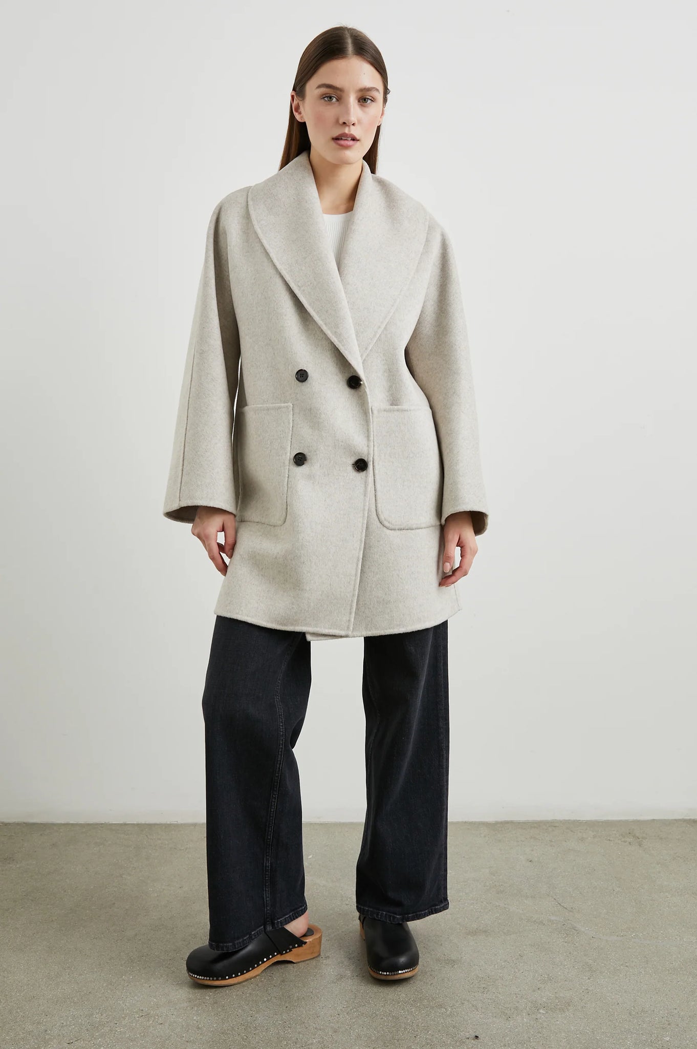 Your classic outerwear gets an upgrade with the Nily, the heavy wool blend, double-breasted coat that’s bound to be your new go-to. With two statement patch pockets and a knee-length fit, this is your layering piece for the season.