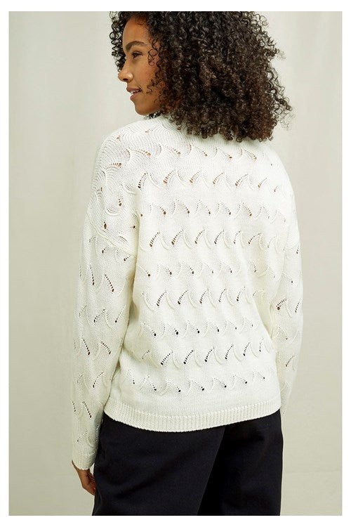 Organic Merino wool jumper with intricate lace knit design. Featuring a reinforced neck, hem & cuffs