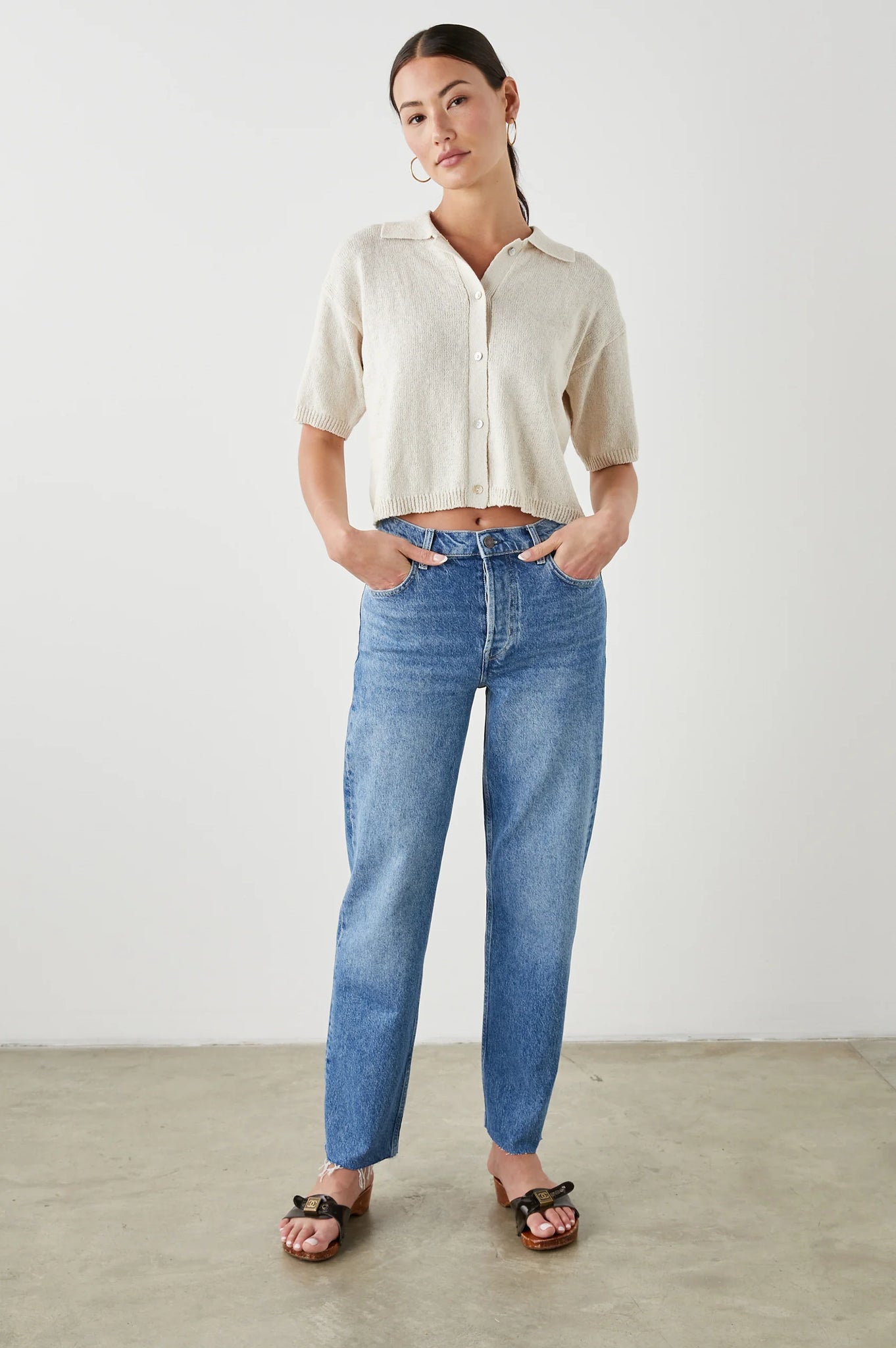 Keep cool in this effortless and breezy top, made from lightweight cotton slub. With functional full-length buttons and a slight cinch at the bottom hem, The Holland belongs in your summer-getaway suitcase.