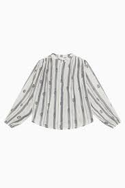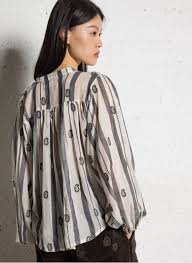 Ivory and grey paisley blouse with golden strands woven throughout.