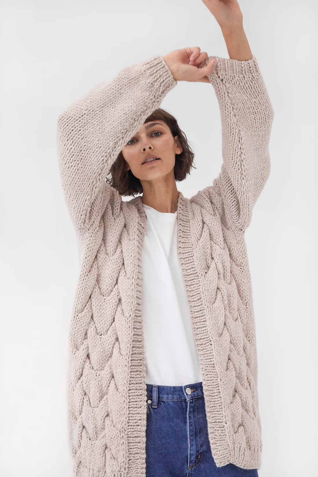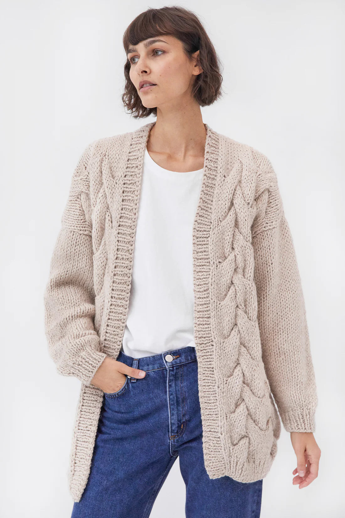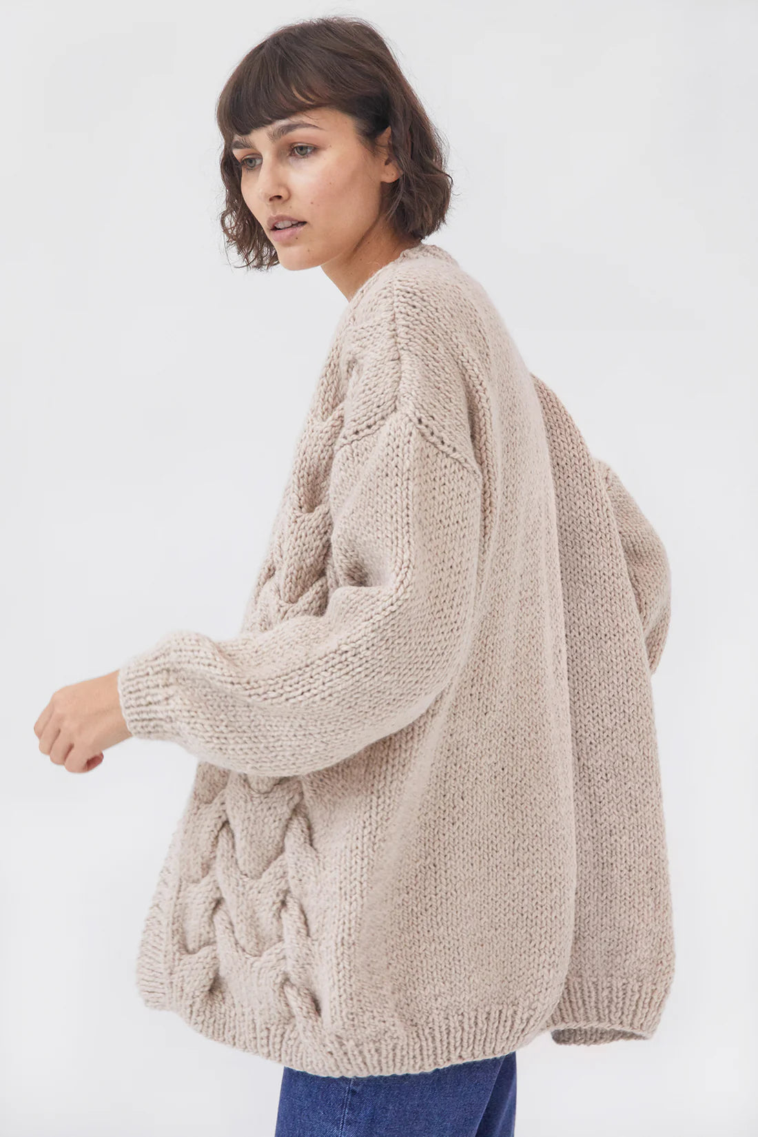 Our Erik knit is a little like your first crush: loose and twisted. A tribute to our adolescent selves and decade-old promises for future adventures, our Twisted Erik was designed to be thrown on when spontaneity occurs. Made from wool and alpaca with a hand-knitted plaited design, each Twisted Erik is ever so slightly unique. Erik, if you're out there reading this: we're finally over you. Available in beige. Oversized.